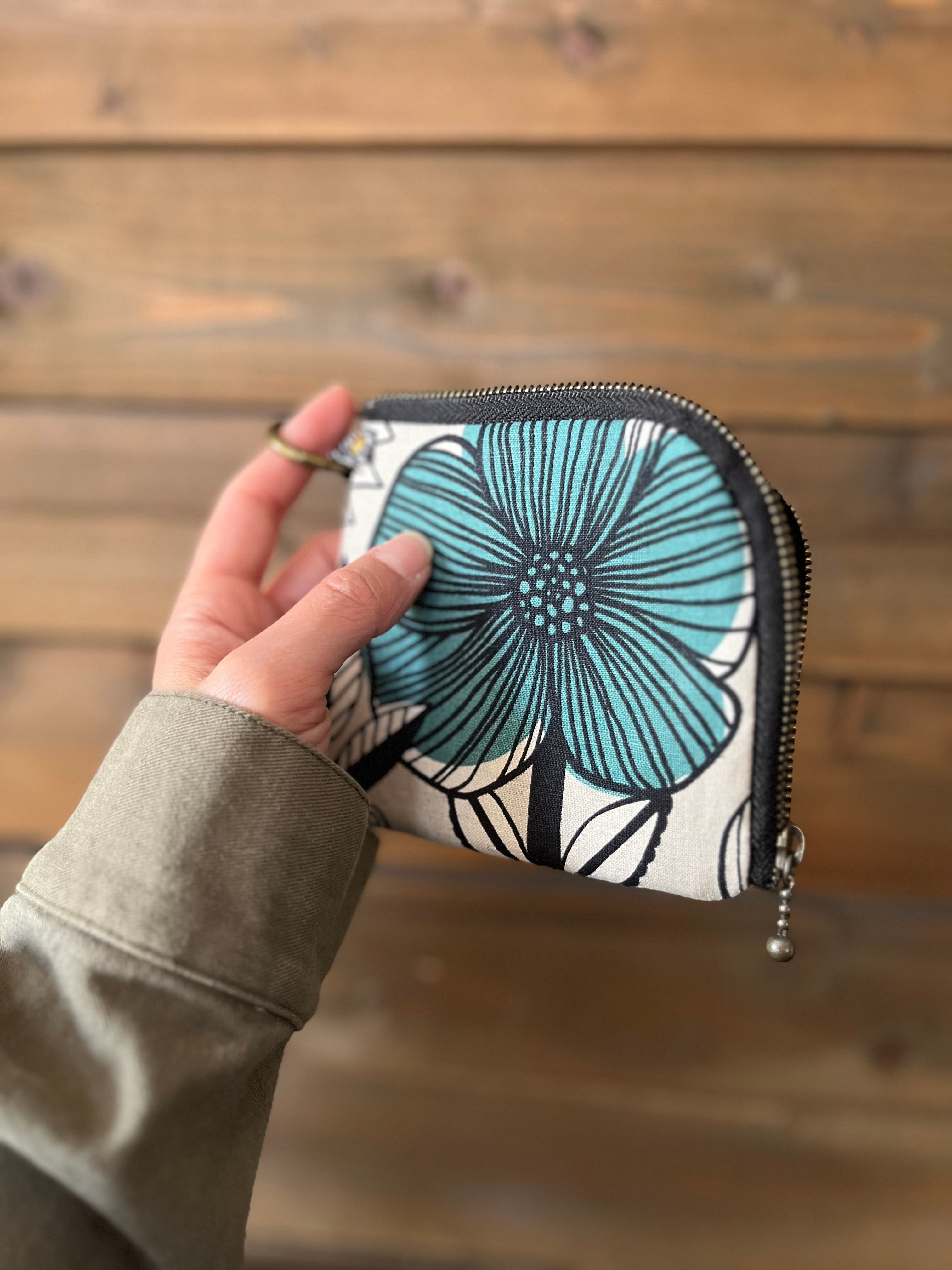 L字ファスナーコンパクト財布 北欧調花柄