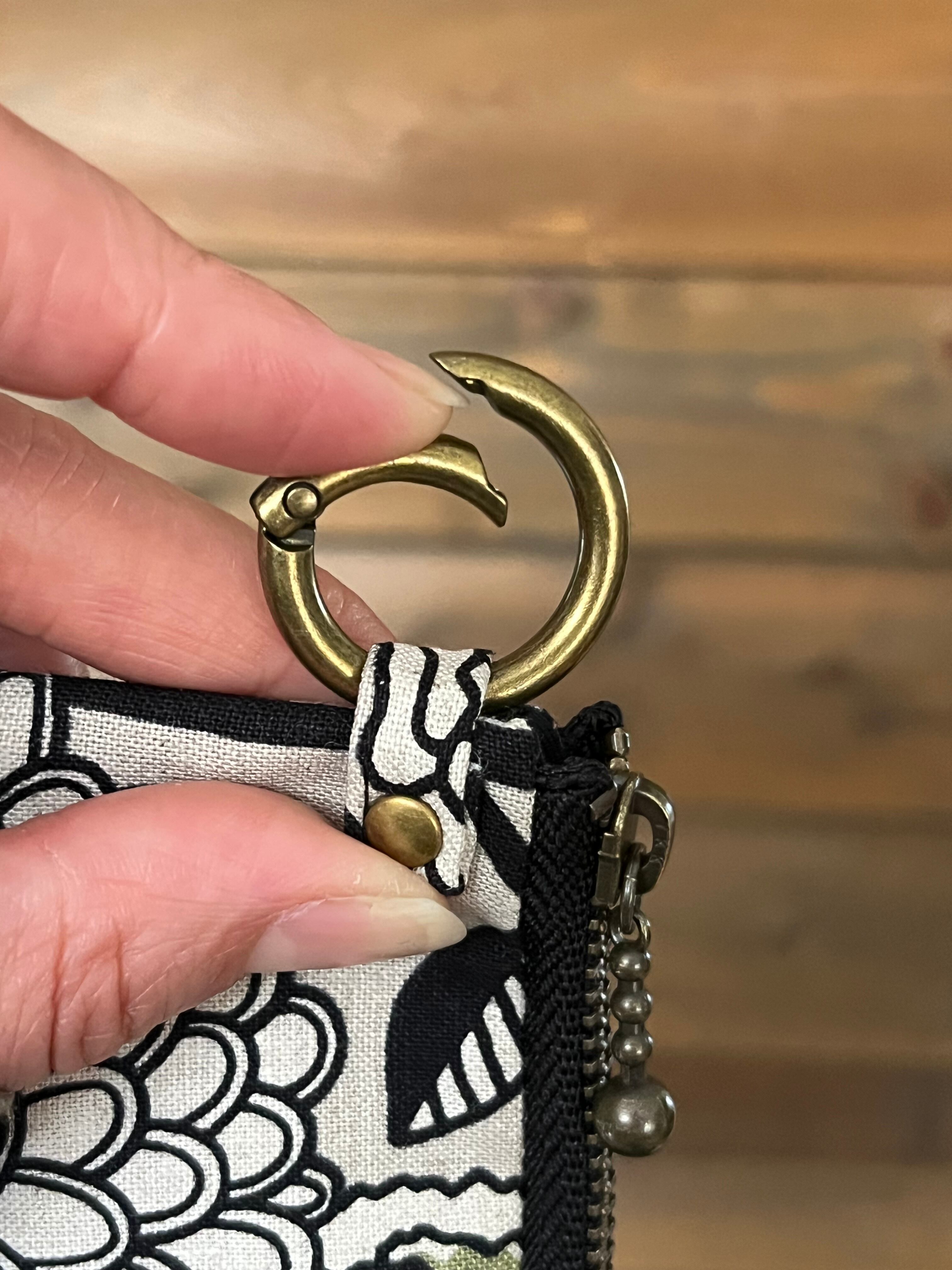 丸カラビナ付きなのでバッグに付けたり、指を引っ掛けて開閉したりと便利です。