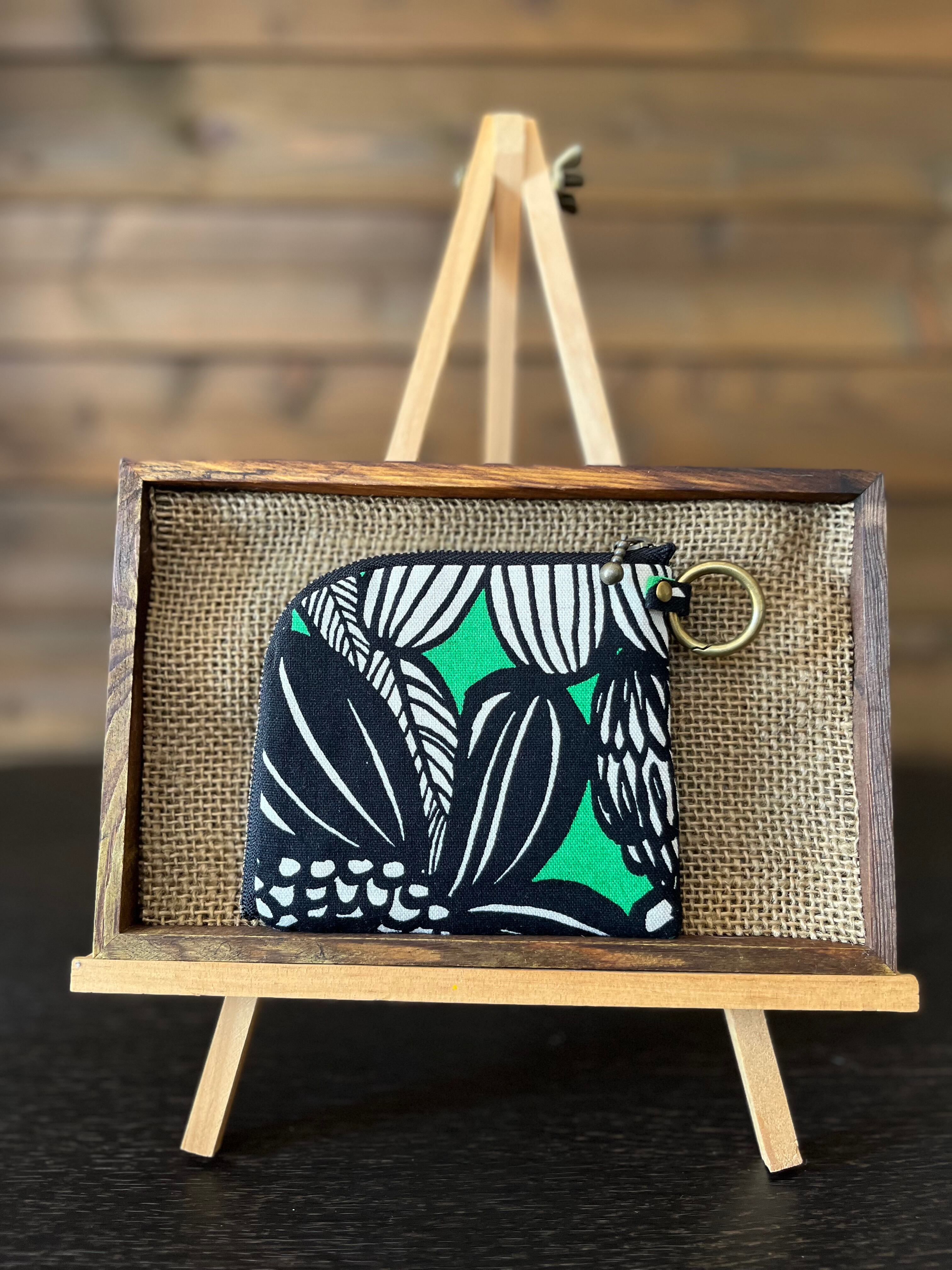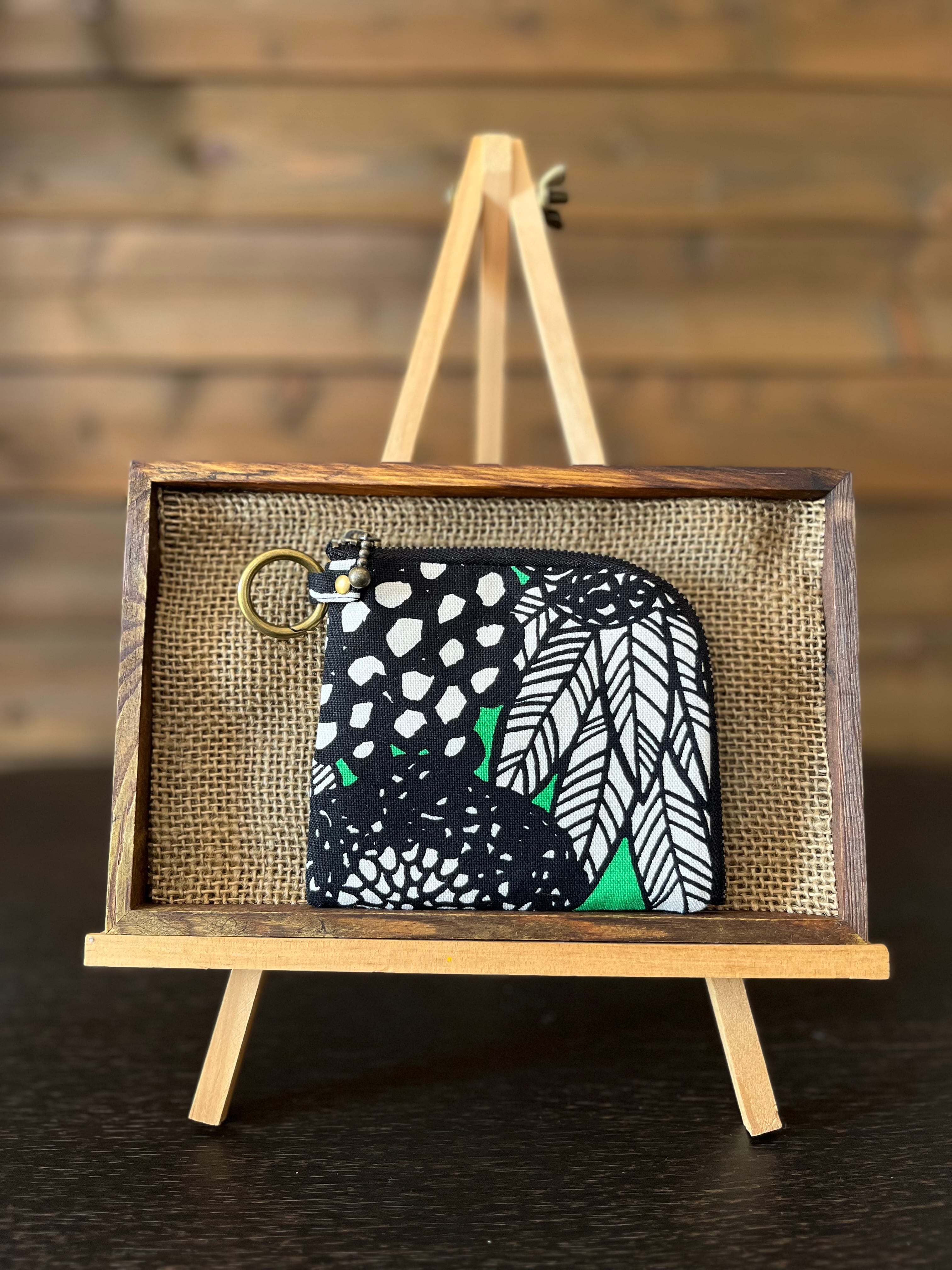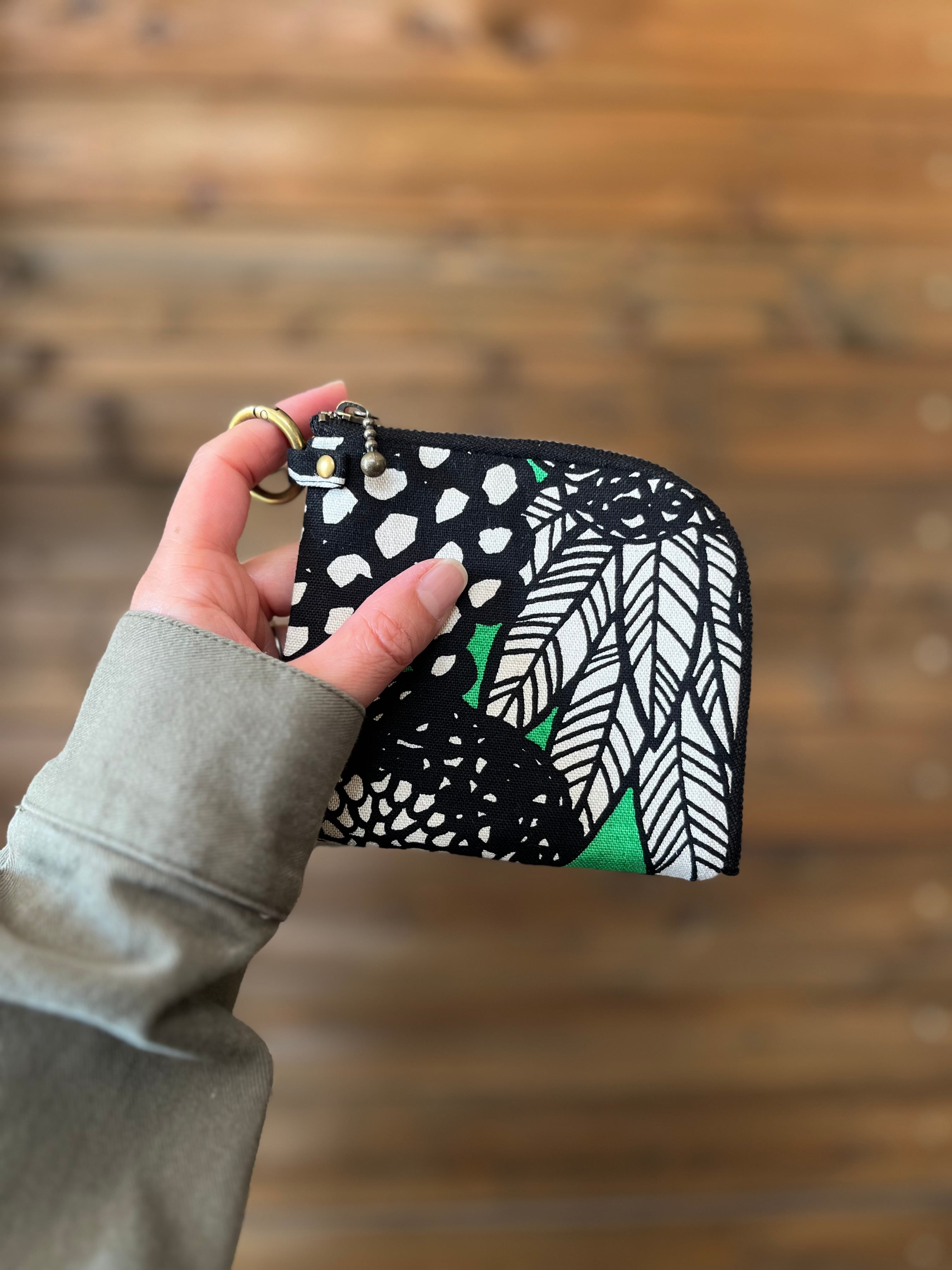 L字ファスナーコンパクト財布 アートフラワー(グリーン)