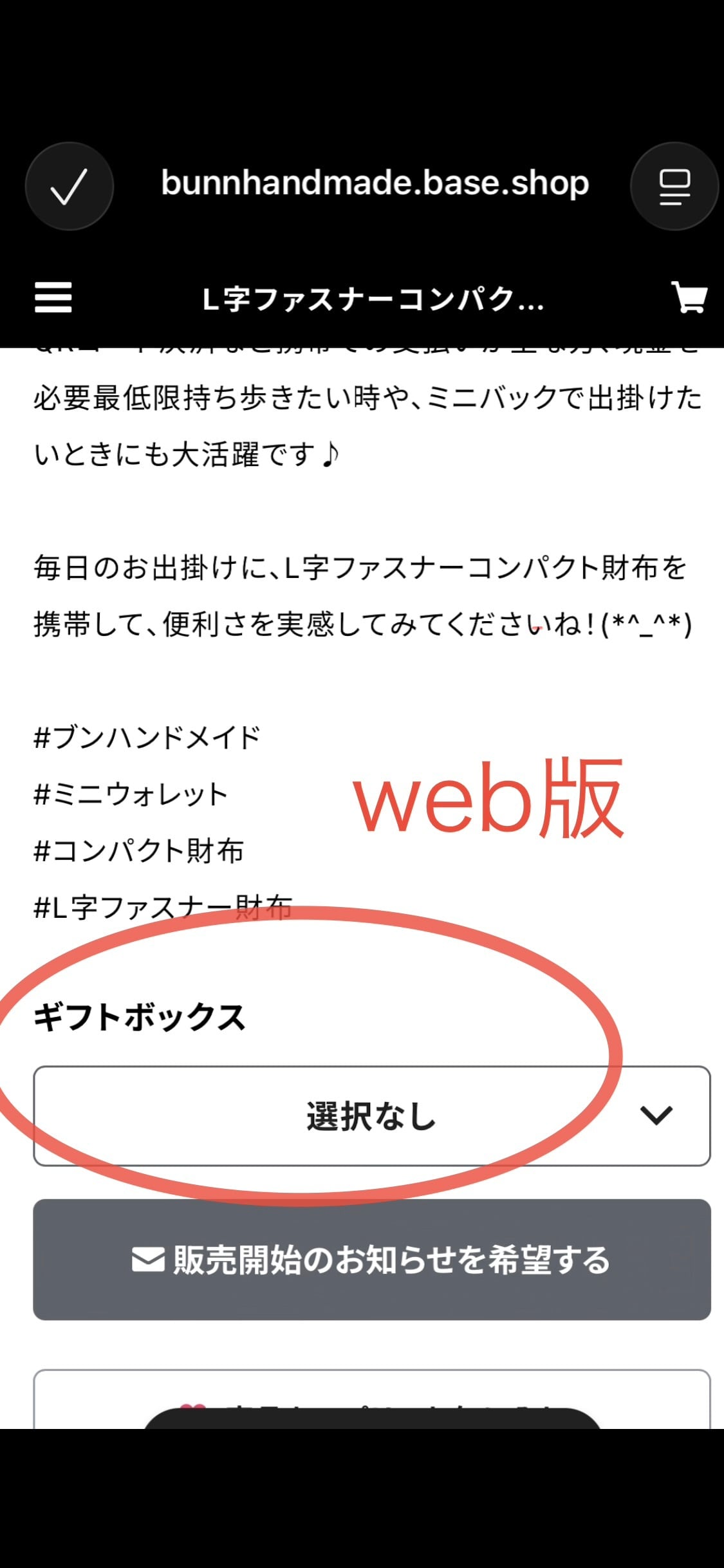 pay IDアプリ版・・・オプション選択が表示されないので、商品ページ内の「商品について質問する」からギフトボックス希望とメッセージをください。インスタのメッセージでも大丈夫です。