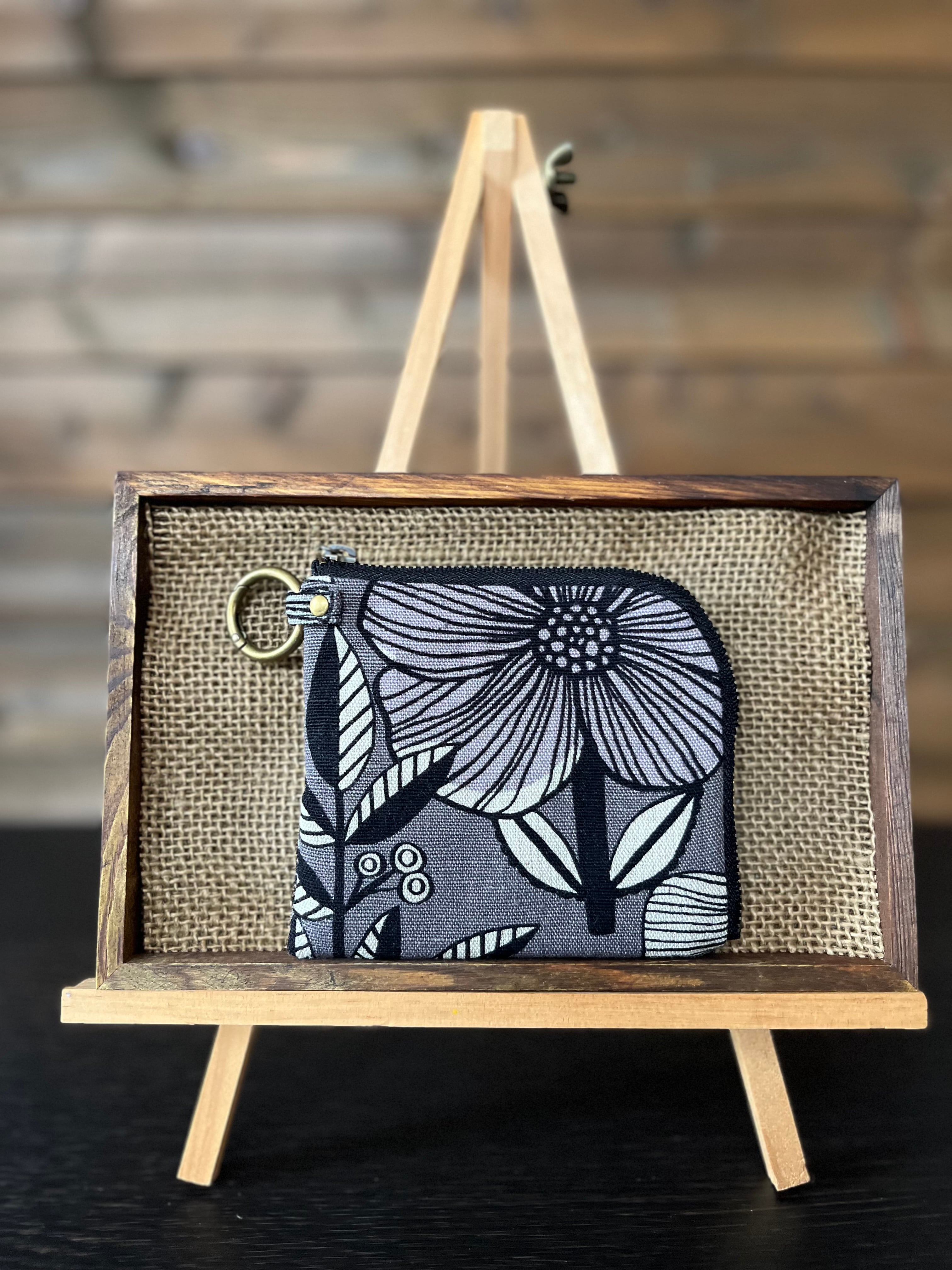 L字ファスナーコンパクト財布 北欧調花柄グレー