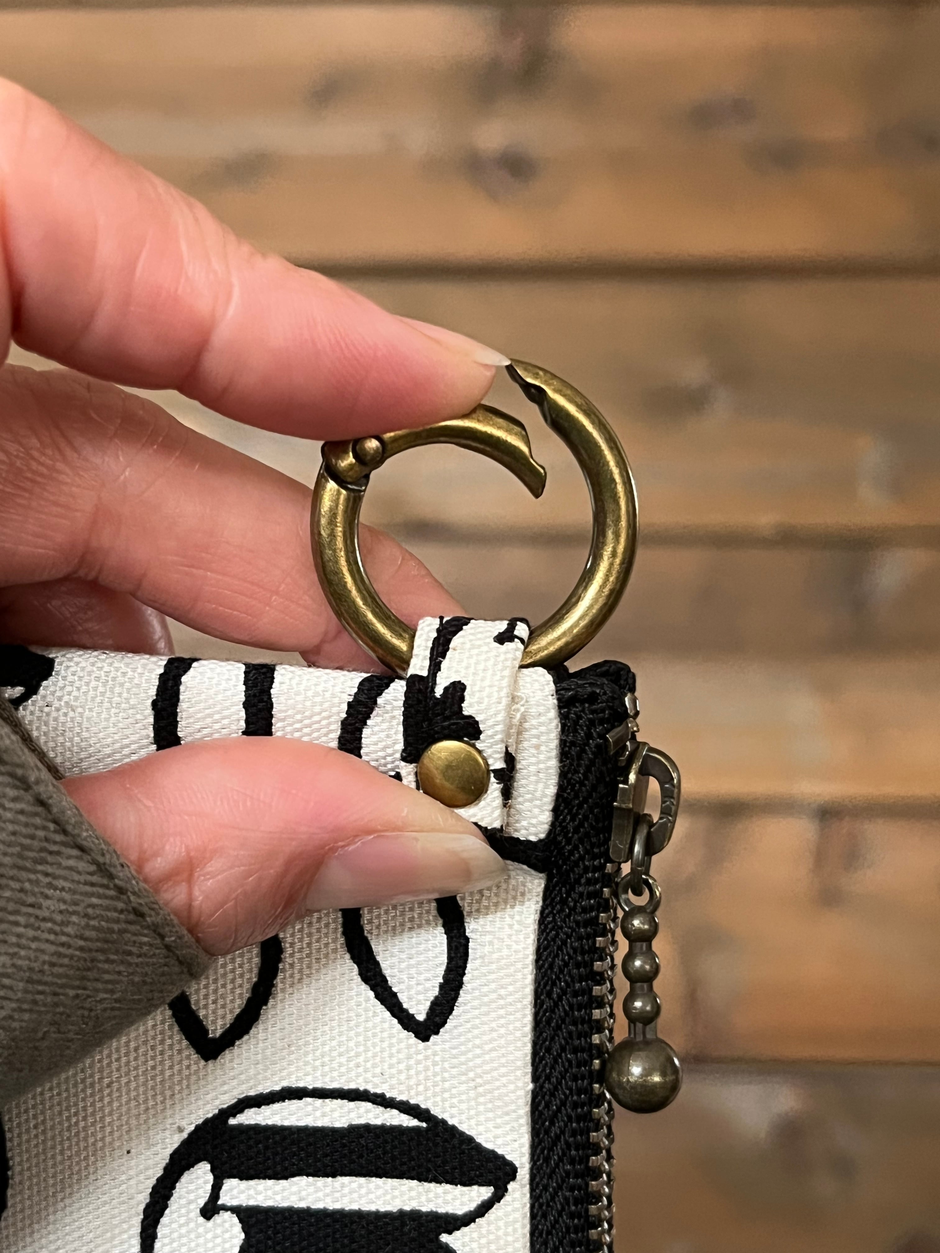 丸カラビナ付きなのでバッグに付けたり、指を引っ掛けて開閉したりと便利です。