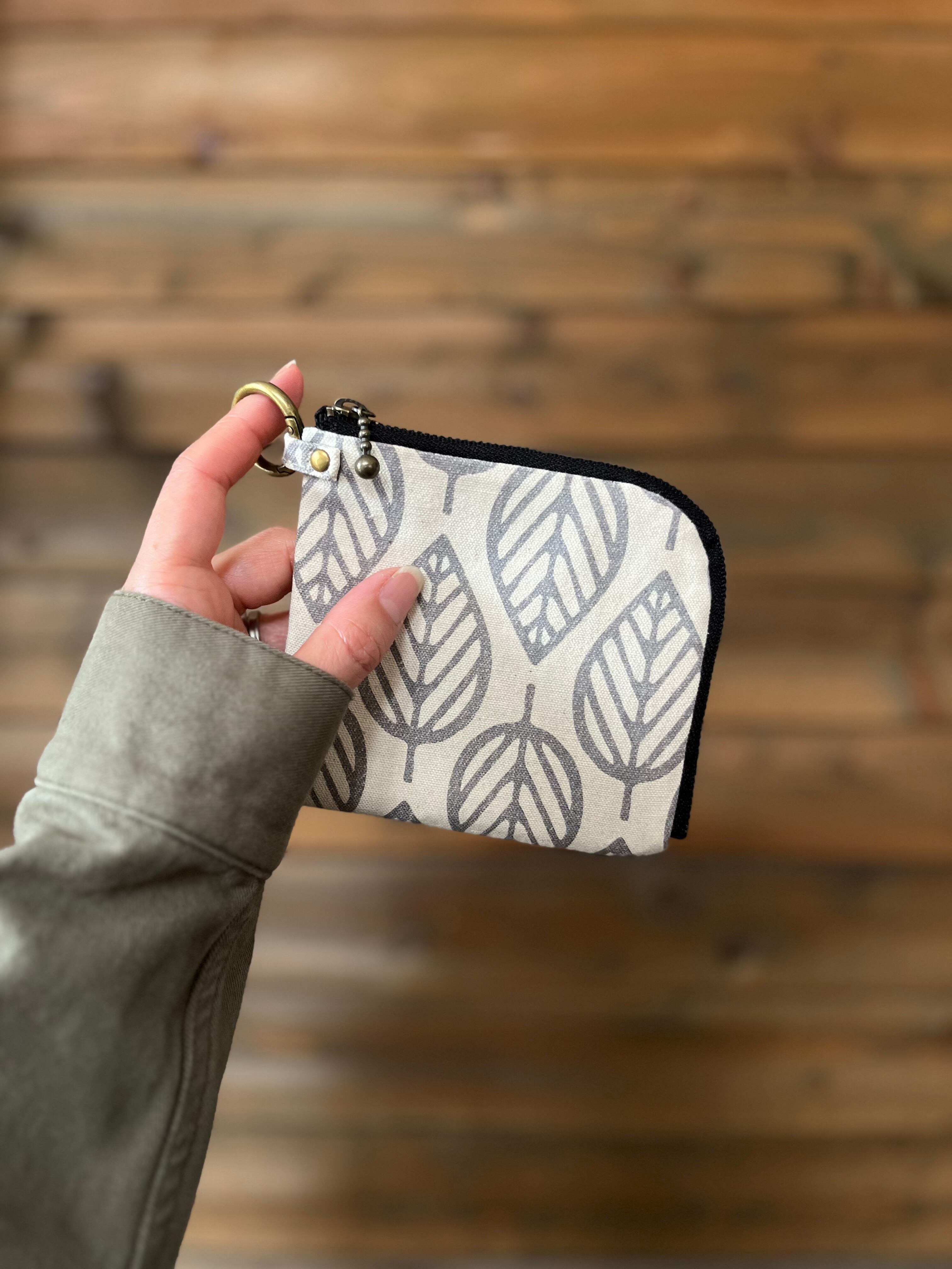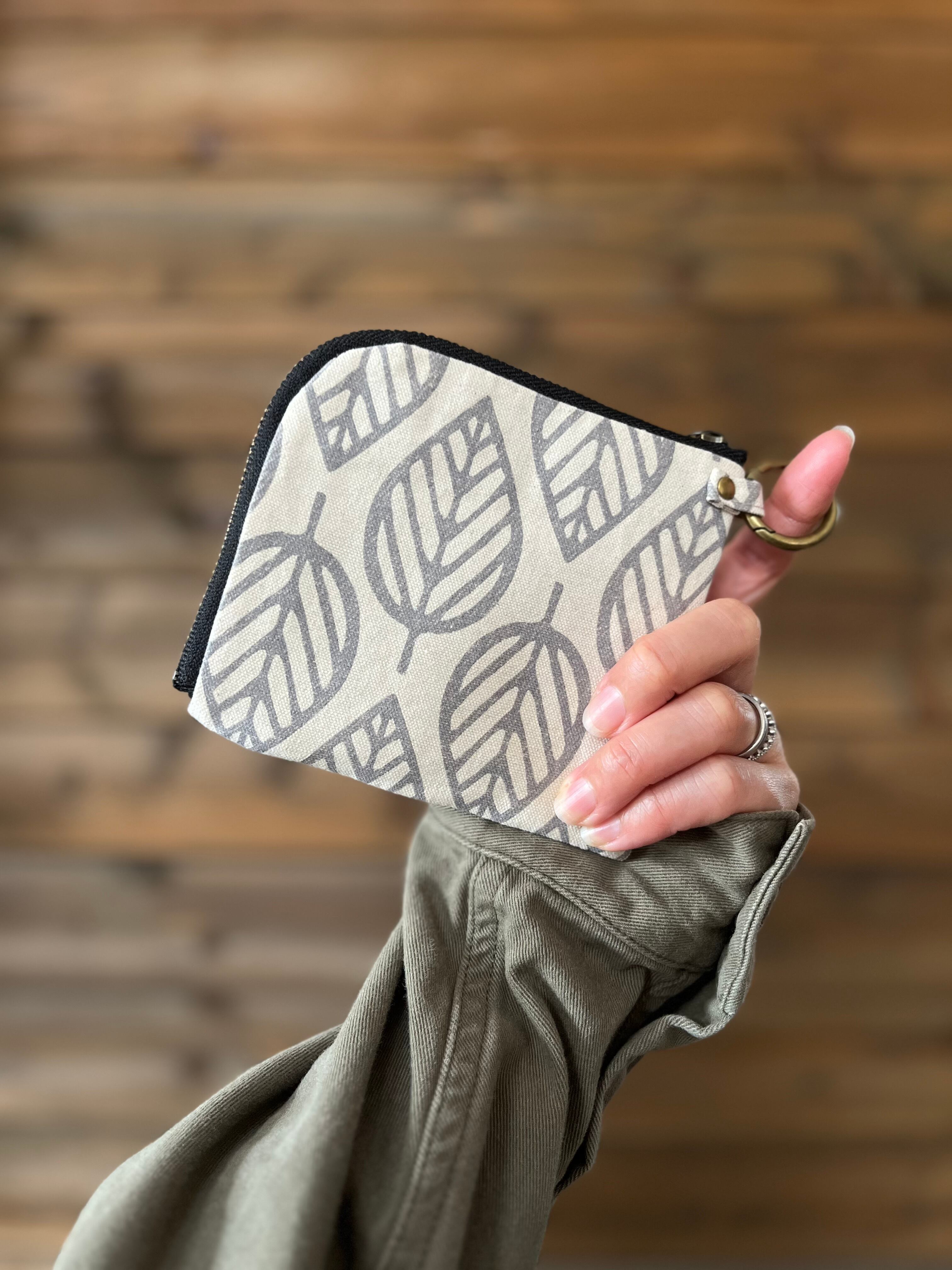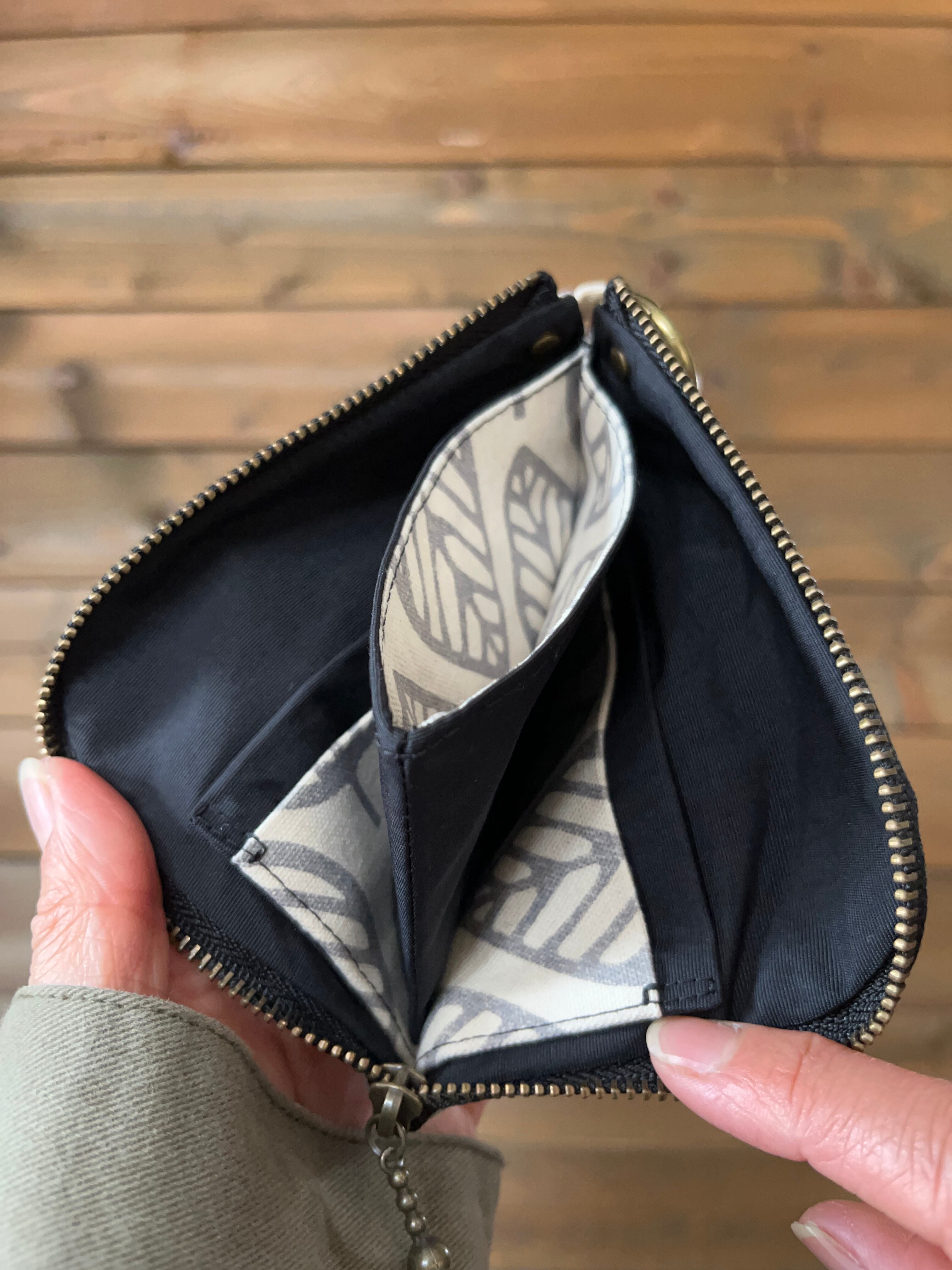 L字ファスナーコンパクト財布 リーフ(グレー)