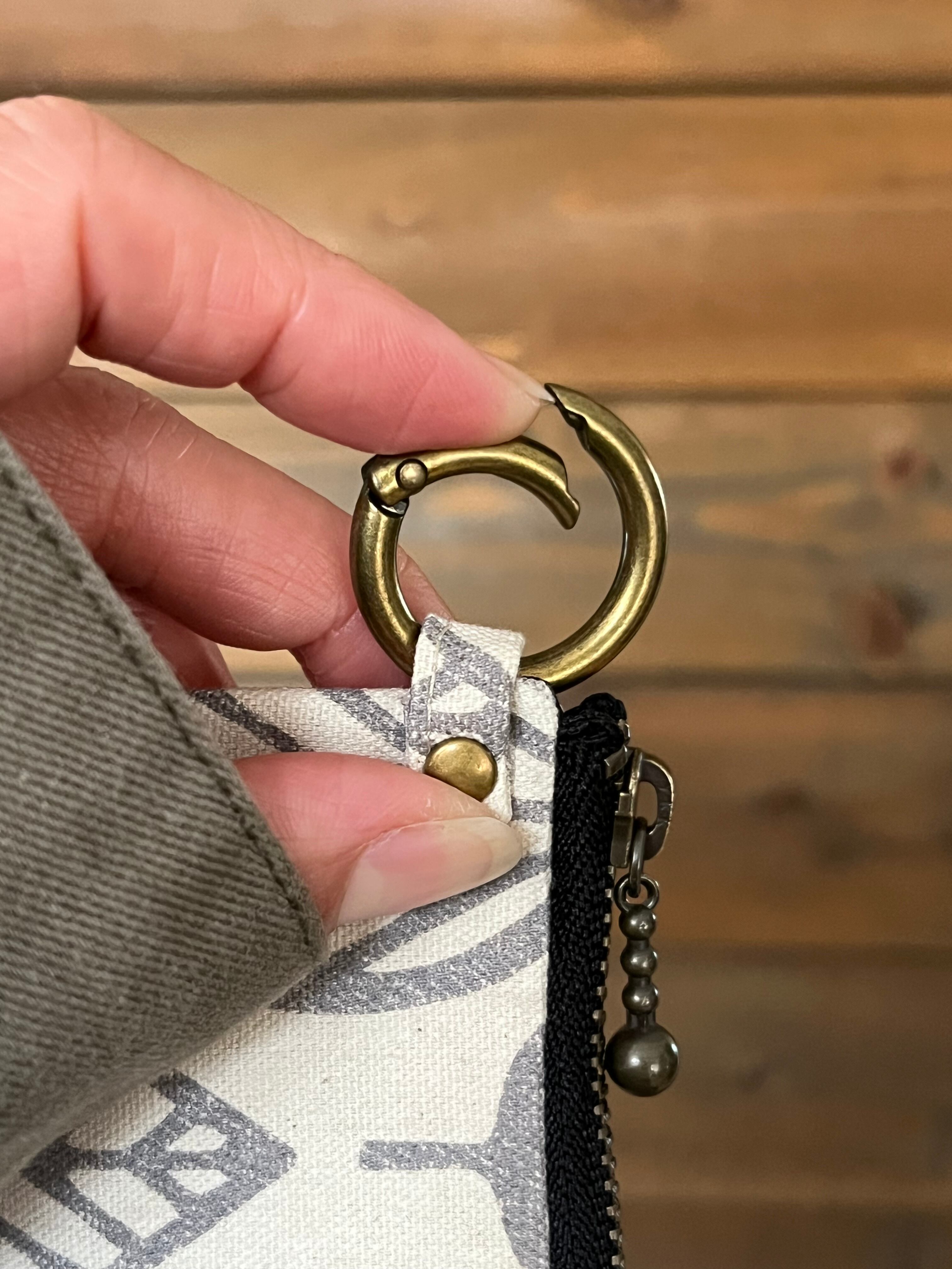 丸カラビナ付きなのでバッグに付けたり、指を引っ掛けて開閉したりと便利です。