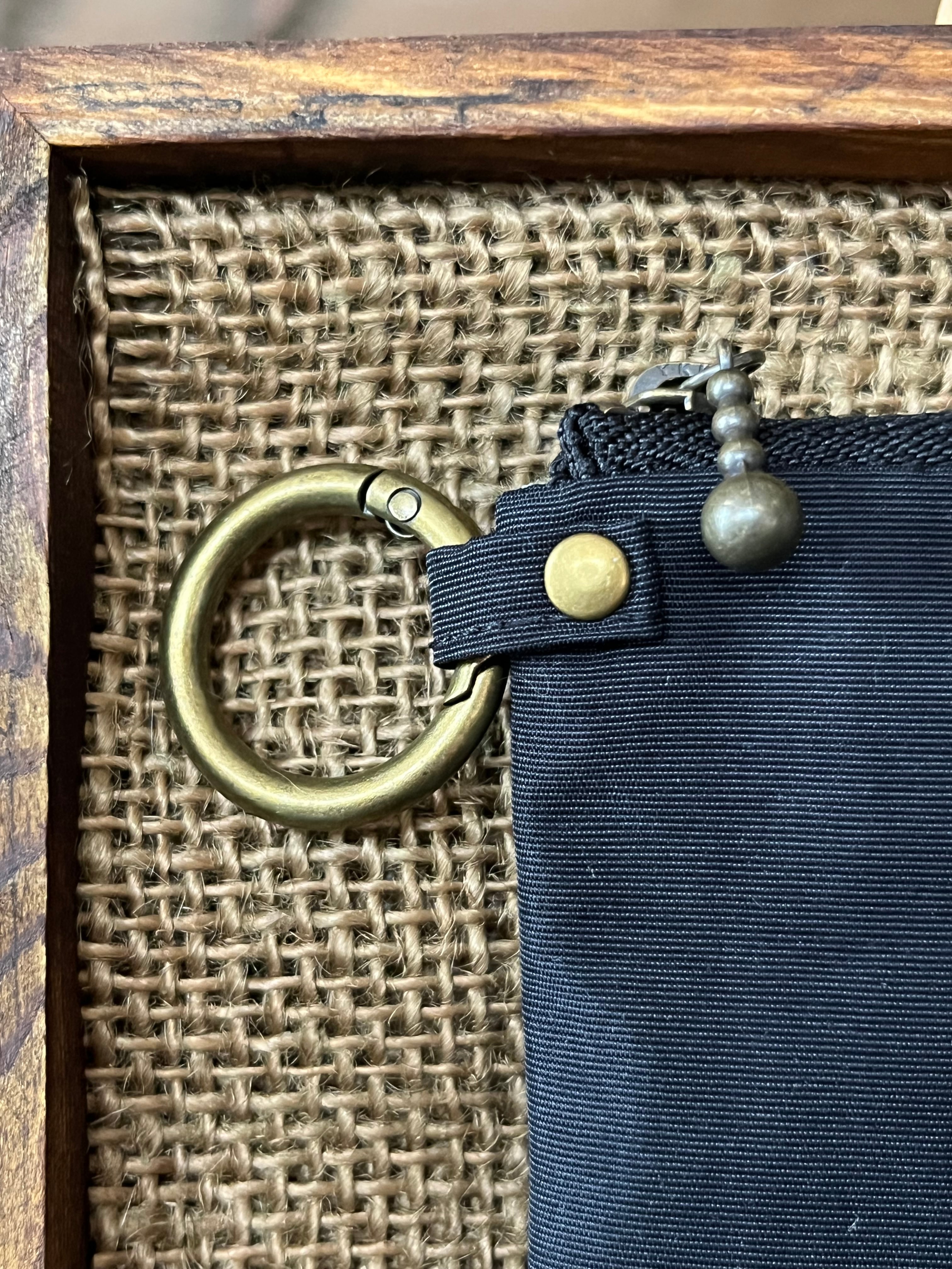 丸カラビナ付きなのでバッグに付けたり、指を引っ掛けて開閉したりと便利です。