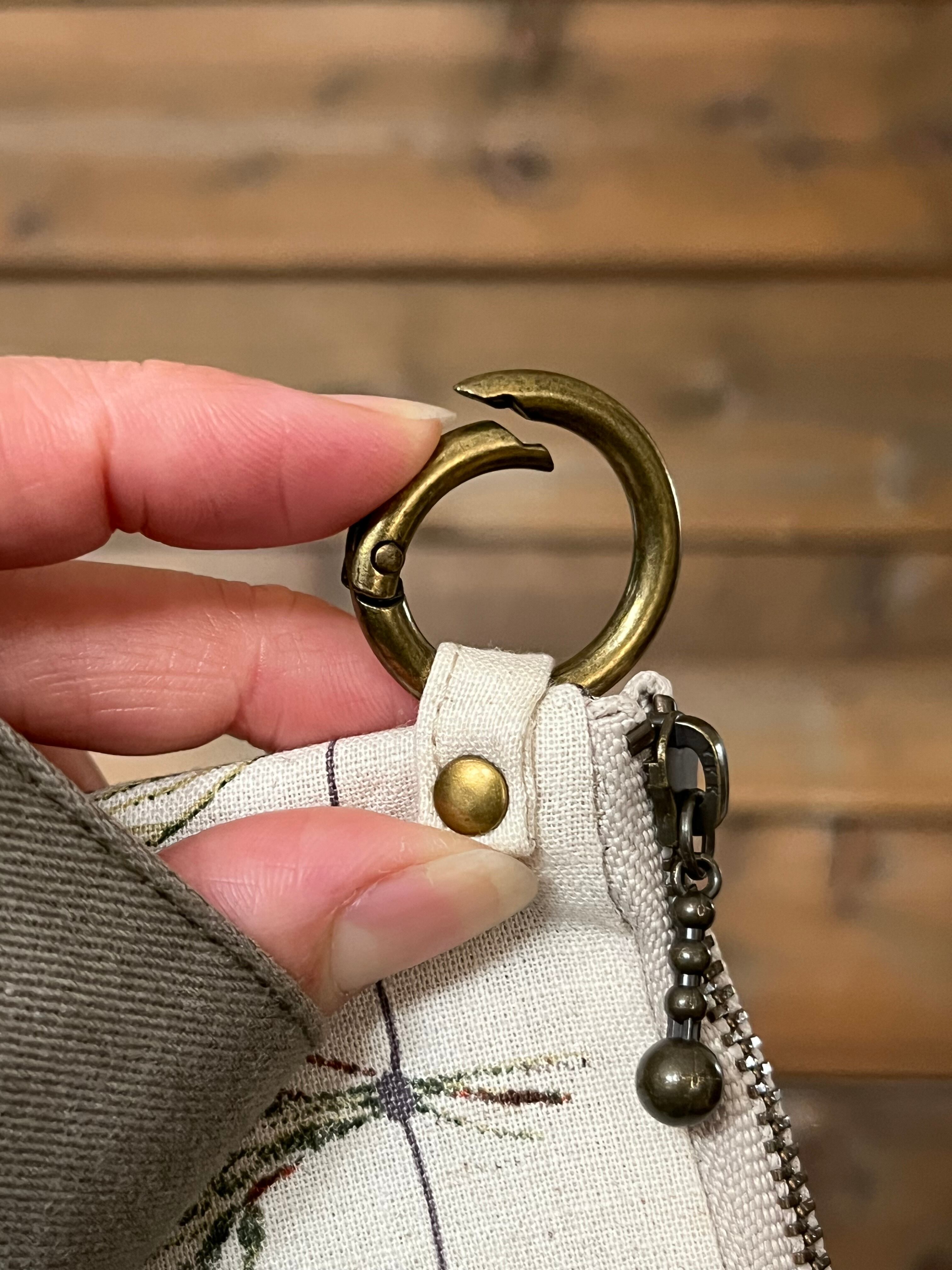 丸カラビナ付きなのでバッグに付けたり、指を引っ掛けて開閉したりと便利です。