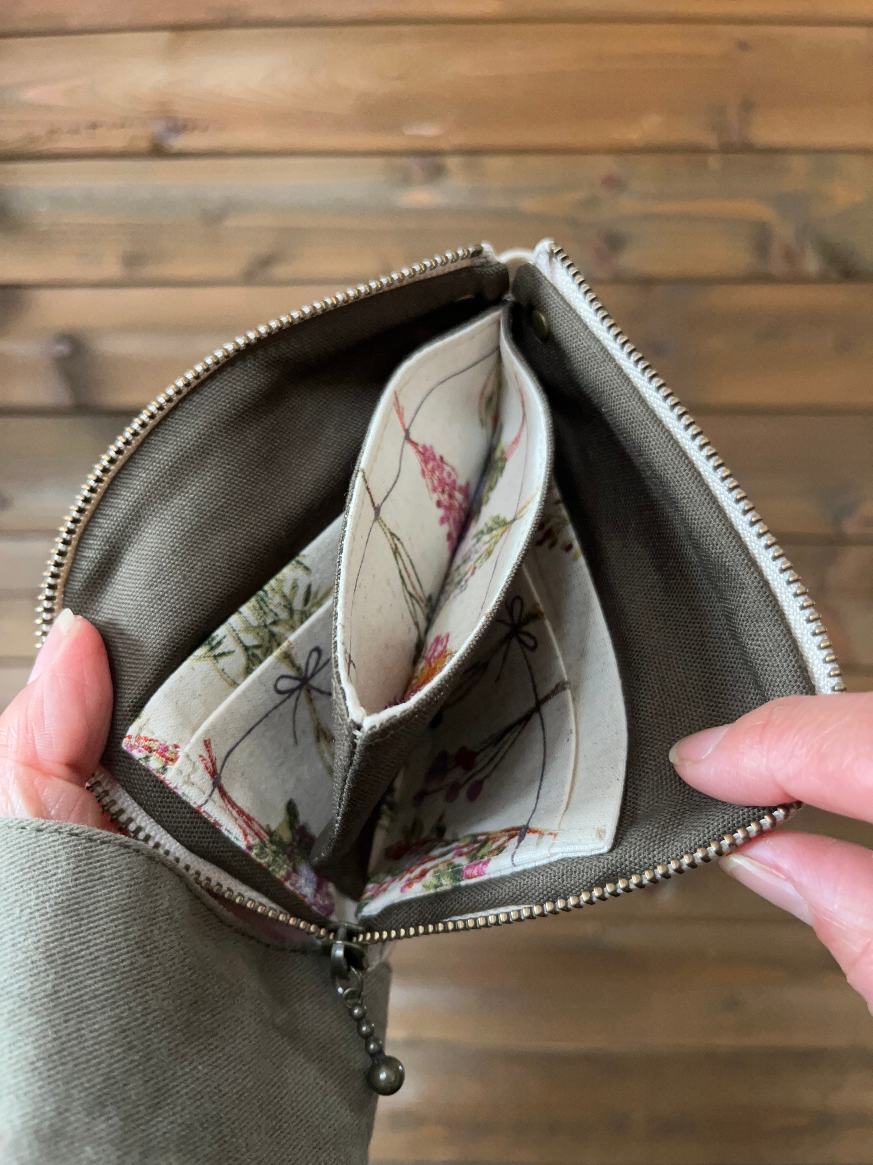 コインポケットの位置を調整してあるためファスナーを閉めた状態で財布を振ってもコインがカードポケットの方へ飛び出す心配はありません。