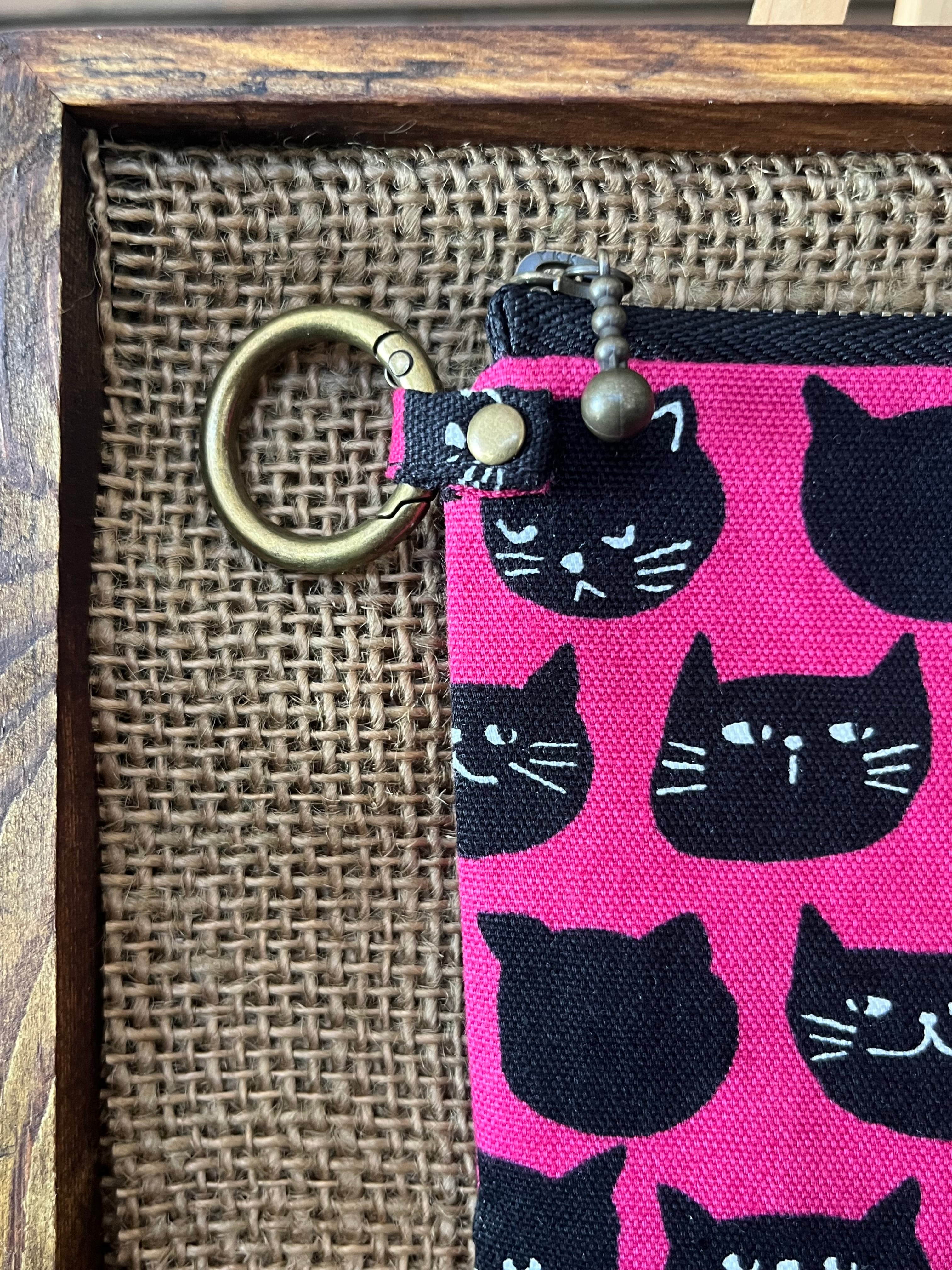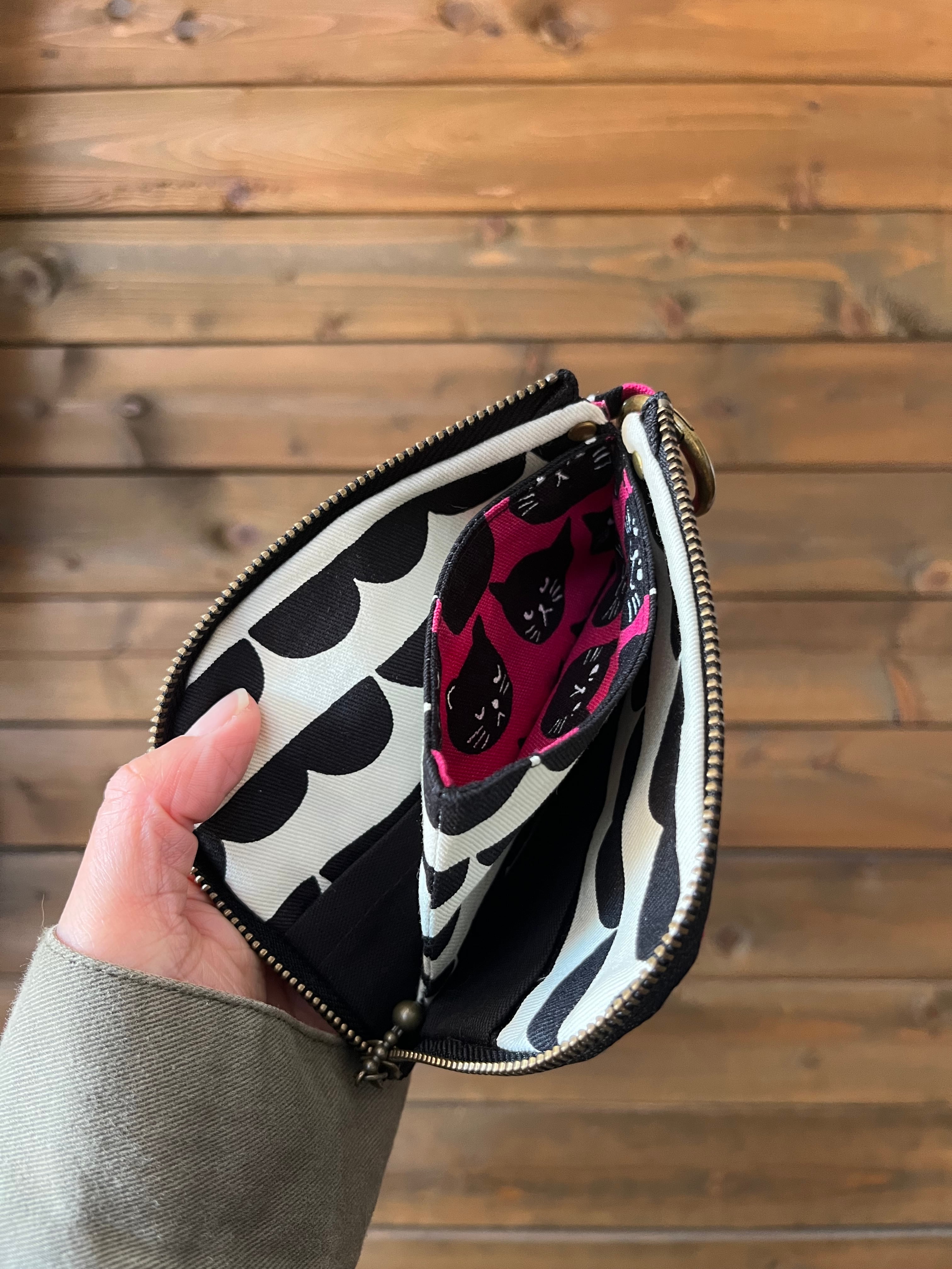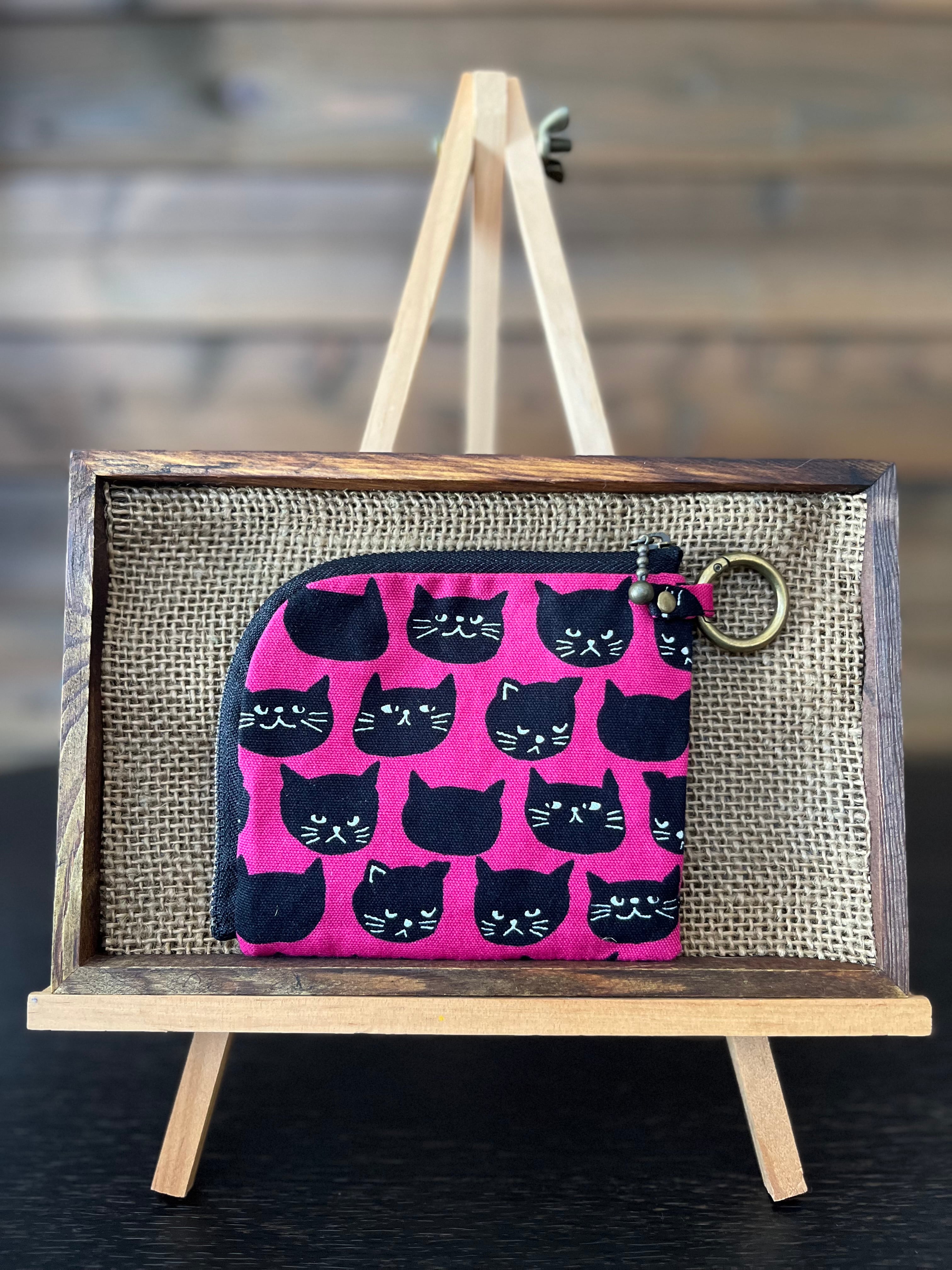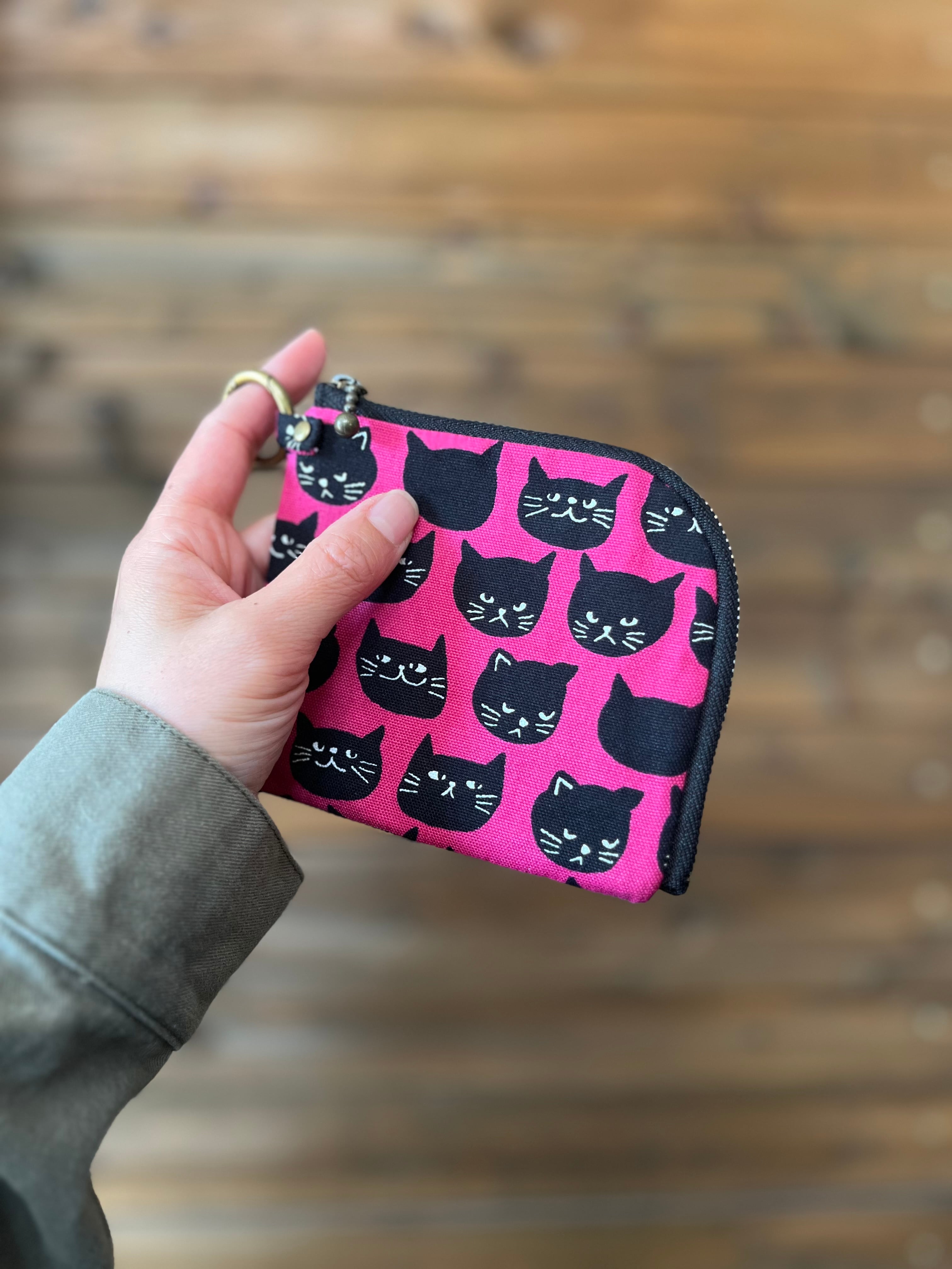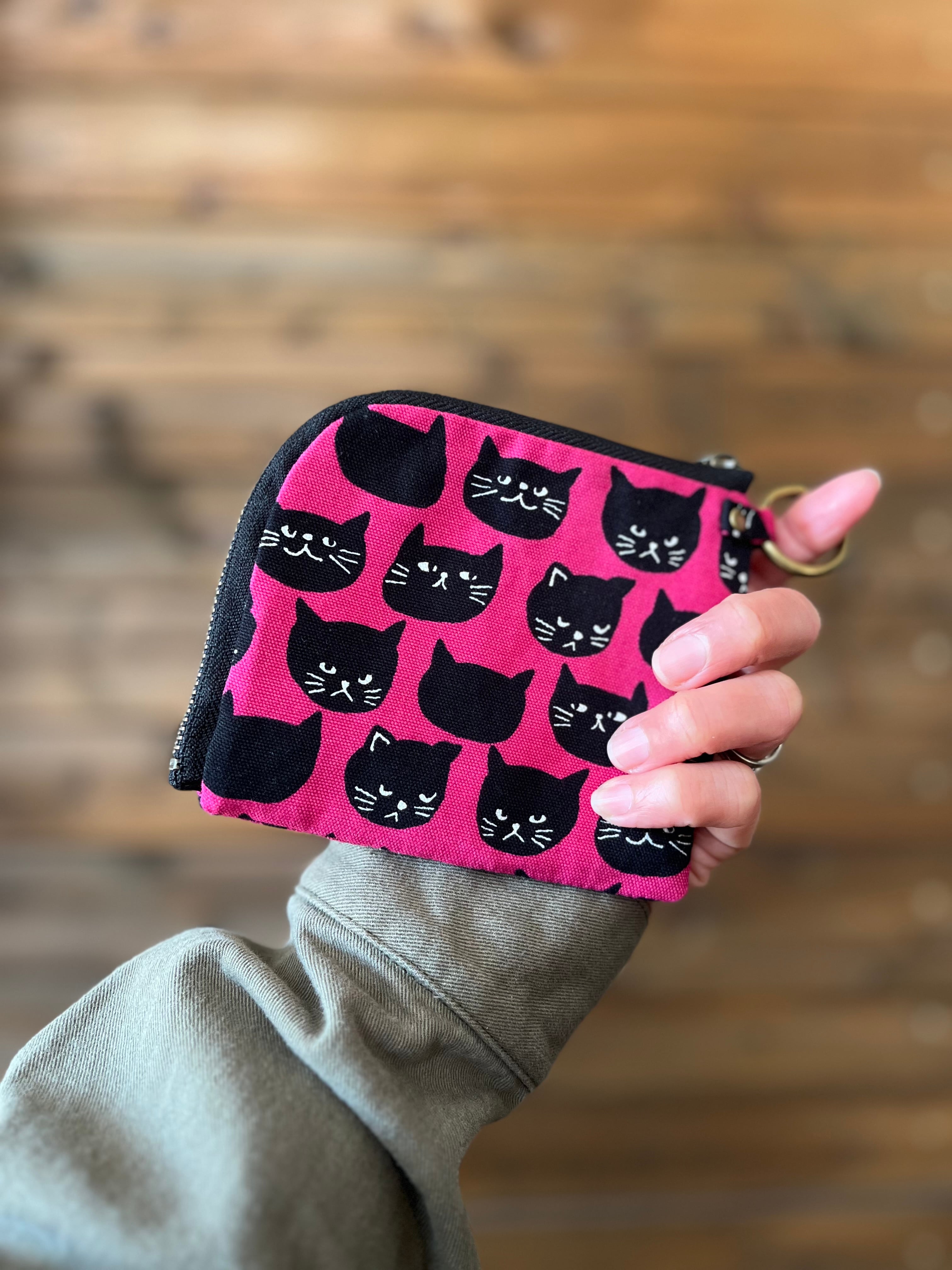 L字ファスナーコンパクト財布 黒猫ピンク